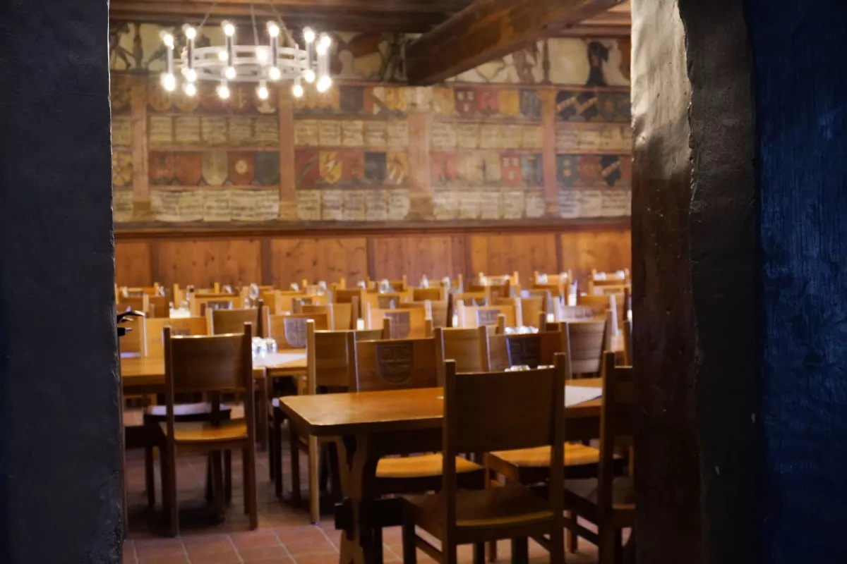 Der Landgerichtssaal bietet Platz für bis zu 100 Personen und ist hervorragend geeignet für Hochzeiten, Bankette und Tagungen. Familienfeste können auch in den kleineren Räumen gebucht werden. Reservation über die Webseite der Gastronomie oder telefonisch unter +41 (0)81 723 13 13.